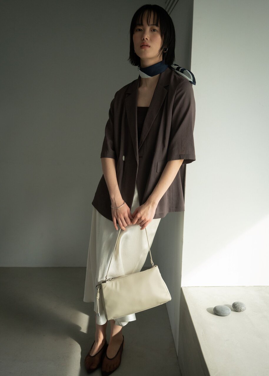 バッグやスカーフなどの小物をアクセントに。