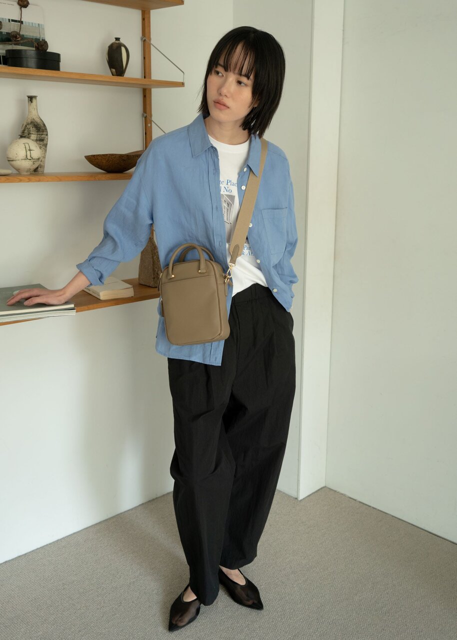バッグは斜め掛けにして、アクティブな休日にも。