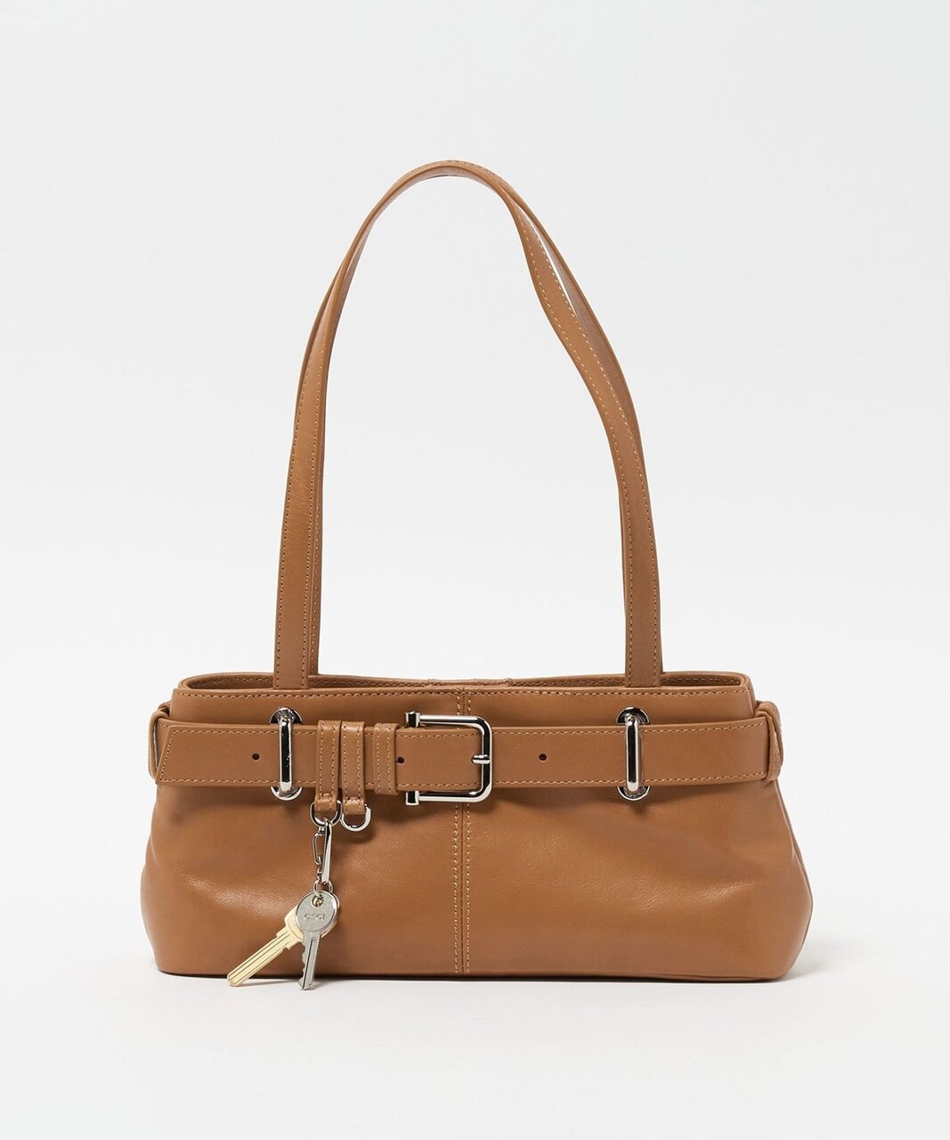 シンプルなボディに、フロントのベルトディテールとキーチャームがデザインアクセント。ジェンダーレスなデザインで、幅広い方に人気です。