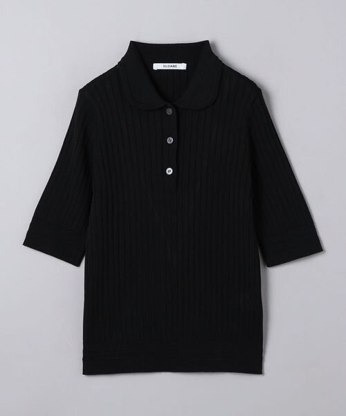 リブ ボタン ハーフスリーブ ニット