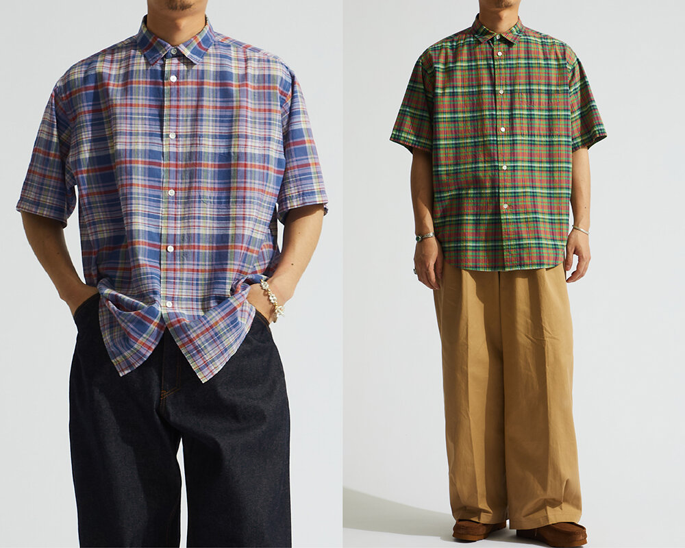 鮮やかなマドラスチェック生地を使用したレギュラーカラーシャツ。