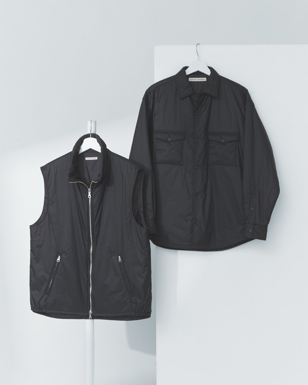 季節の変わり目、段々と秋冬支度を整えたいこれからの季節に〈ユナイテッドアローズ〉からお届けするのは、シックなデザインのシャツとベスト。表地のナイロンは、多くの有名メゾンから支持されているイタリアの老舗生地メーカー・LIMONTA社のアジアラインである、LIMONTA EAST製の素材を採用。上品な光沢感がモードな印象に導きます。さっと羽織れるスマートなシルエットながら、高い保温性を持つ中綿には、イタリアのIMBOTEX社が開発したNOUVELLEのリサイクル素材を使用。サステナブルにも意識を向けながら、デザイン性・防寒性のどちらもしっかり兼ね備えています。環境にも配慮したアイテムを身に纏い、この秋冬もおしゃれを楽しんでいきましょう。
