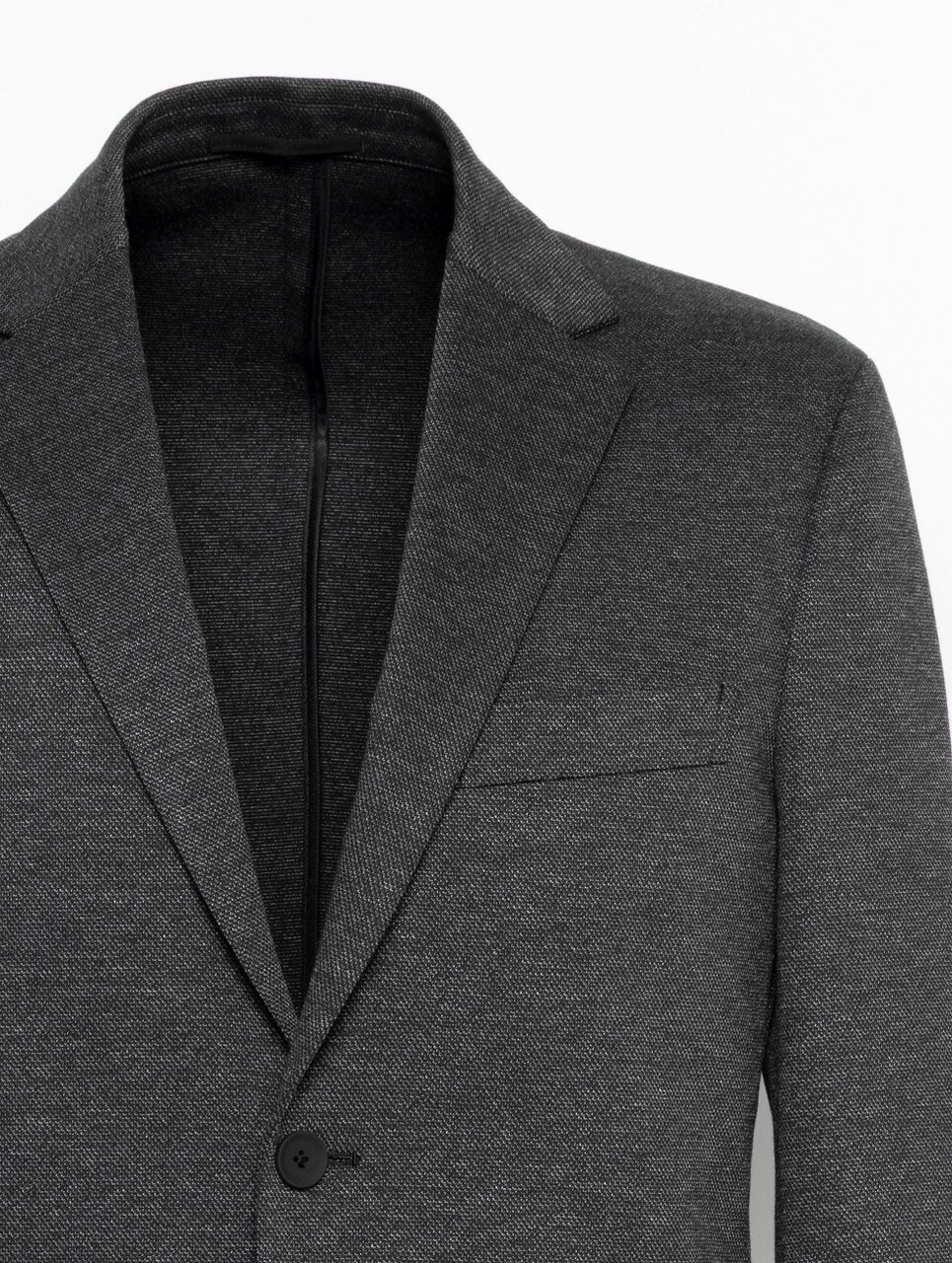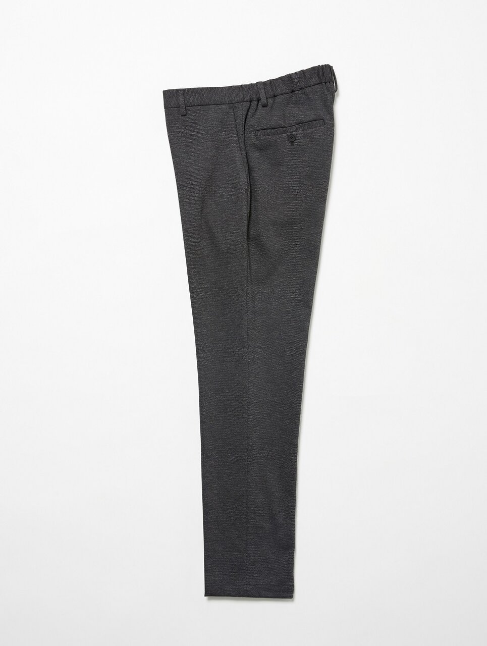 衣(居)心地のよさを追求し、機能性に特化したビジネスウエアシリーズ「UA COZY」のセットアップスーツです。伸縮性のよいアクティブなジャージ素材ながら、ウールライクなシャークスキン柄を表現しており、ビジネスシーンを想定したすっきりとした表情が特徴です。細身のシルエットにシングル2つボタン、ノッチドラペルのデザインできちんとした印象は保ちつつも軽快な着心地が魅力。パンツは、すっきりとしたスリムテーパードのシルエットで、ウエスト部分にハーフギャザーを施したデザインです。