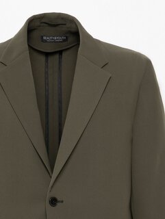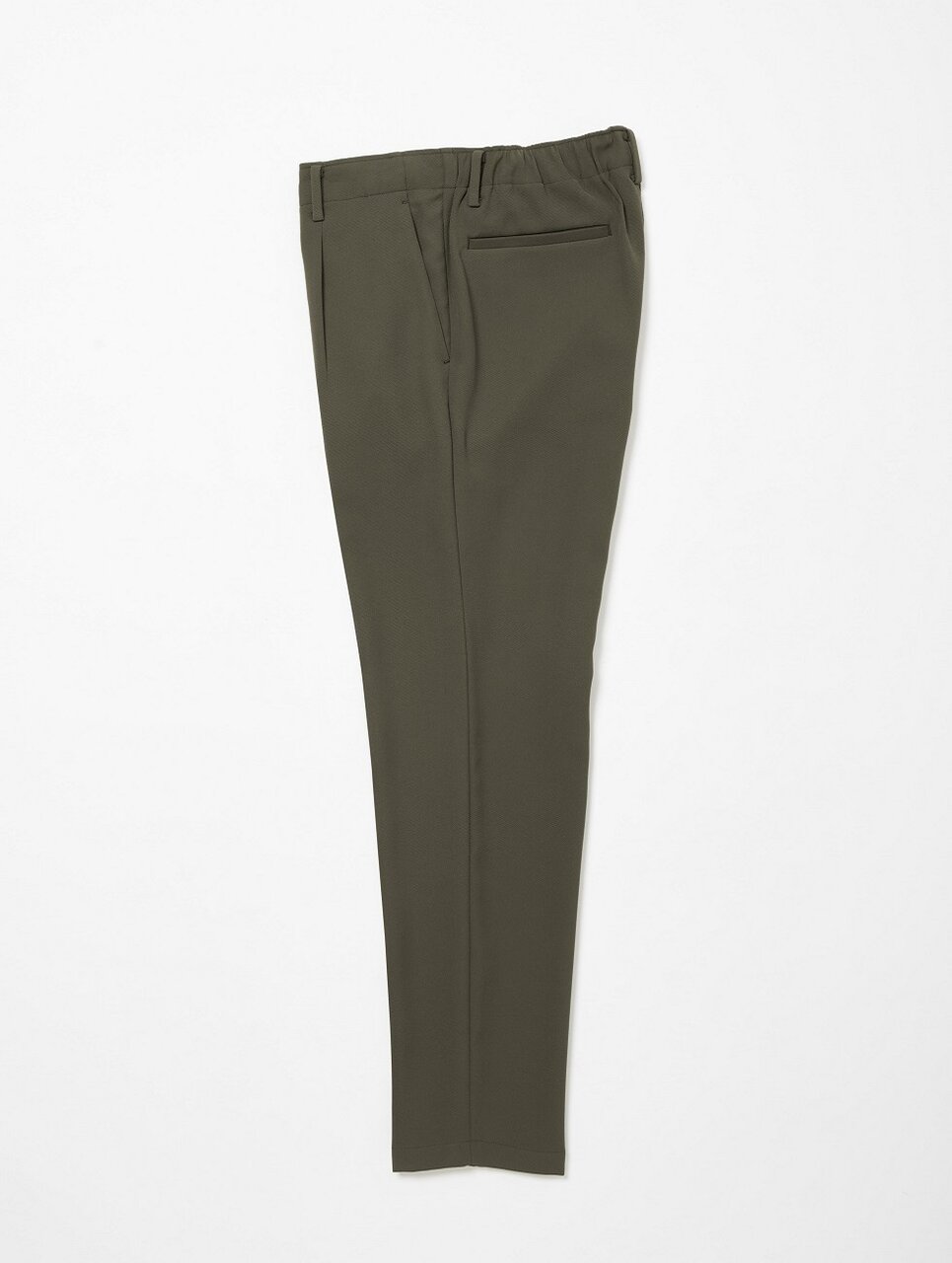 適度なドレープ感と美しい織り目が特徴のトリコチンツイル生地を使用した、程よい膨らみとハリがポイントジャケットとパンツ。ジャケットはウエストの絞りを抑えた、リラックス感のあるシルエットが魅力のコンフォートジャケット。一重仕立てで軽快な着心地を実現し、Tシャツとのレイヤードでももたつかず、スマートに決まります。パンツはヒップ〜わたりにかけて程よくゆとりを持たせた、スリムすぎないテーパードパンツ。ハーフクッションのすっきりとしたレングス設計で、足元までスマートな印象に。後ろウエストにはゴムシャーリングを施し、内側のドローコードで細かなサイズ調整が可能。