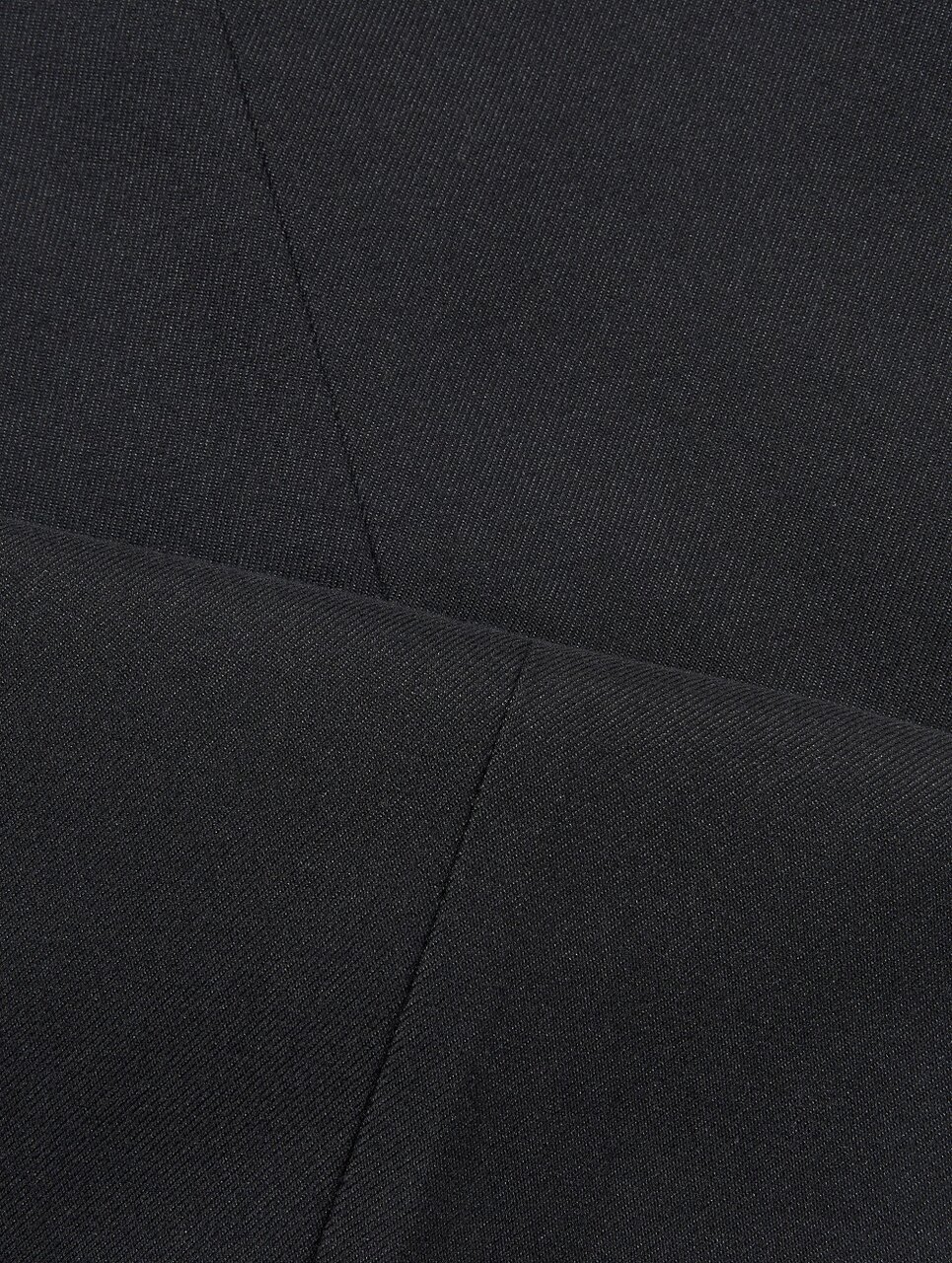 素材にはウールライクなポリエステル糸を使用した〈F-LET〉生地を採用。フラノのような上品な質感と中肉でハリのある風合いが特徴で、秋口から春先まで長く楽しめる一着。