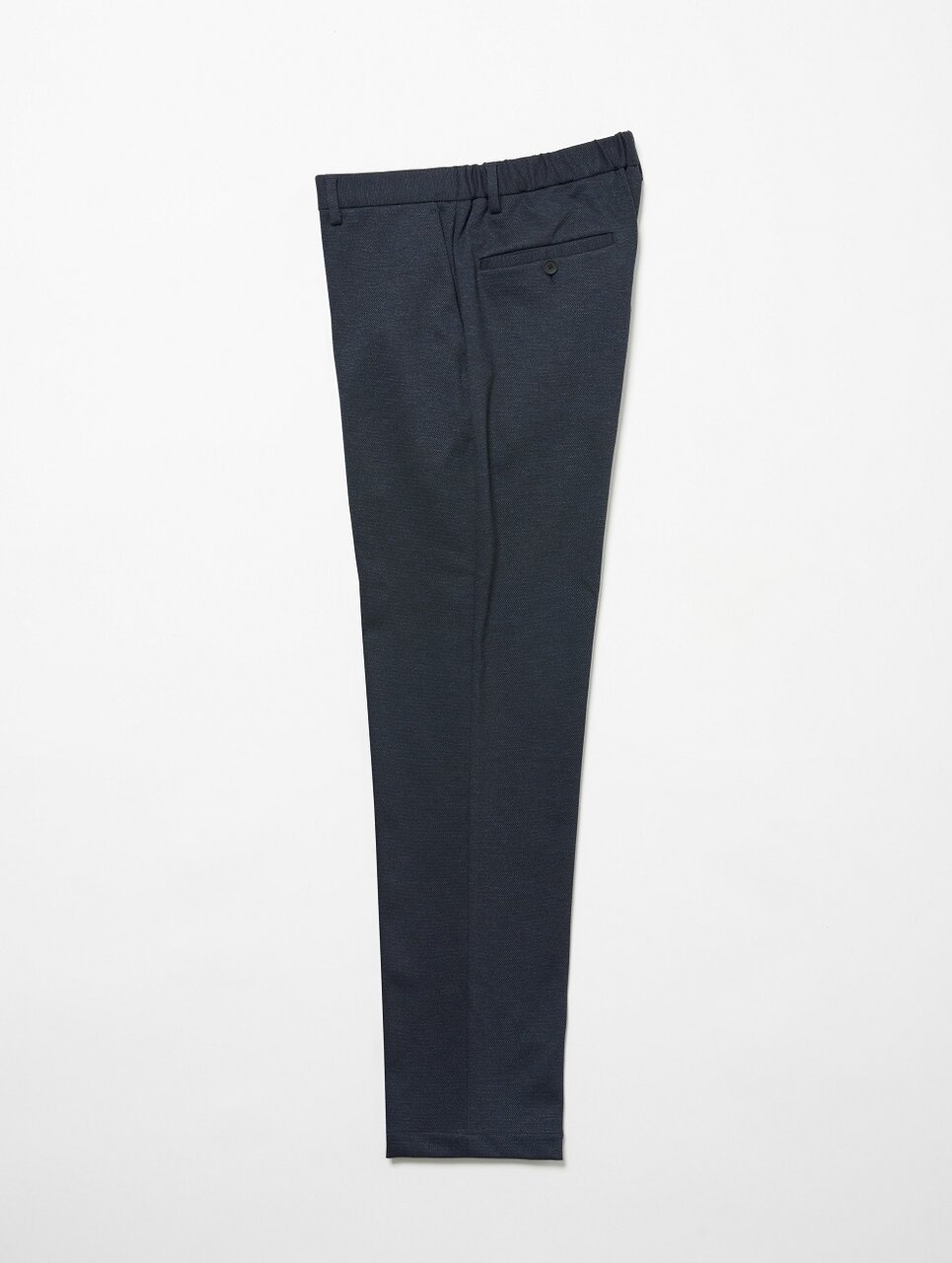 衣(居)心地のよさを追求し、機能性に特化したビジネスウエアシリーズ「UA COZY」のセットアップスーツです。伝統的なシャークスキン柄を表現したジャージー素材を使用。柔らかな質感と、通年着用可能な生地感が特徴です。ウォッシャブルの機能に加え、ストレッチ、着用によるシワが目立ちにくいのもうれしいポイント。きちんとした印象を保ちながらも快適な着心地と使い勝手のよさが魅力の一着です。パンツは、すっきりとしたスリムテーパードのシルエットで、ウエスト部分にハーフギャザーを施したデザインです。