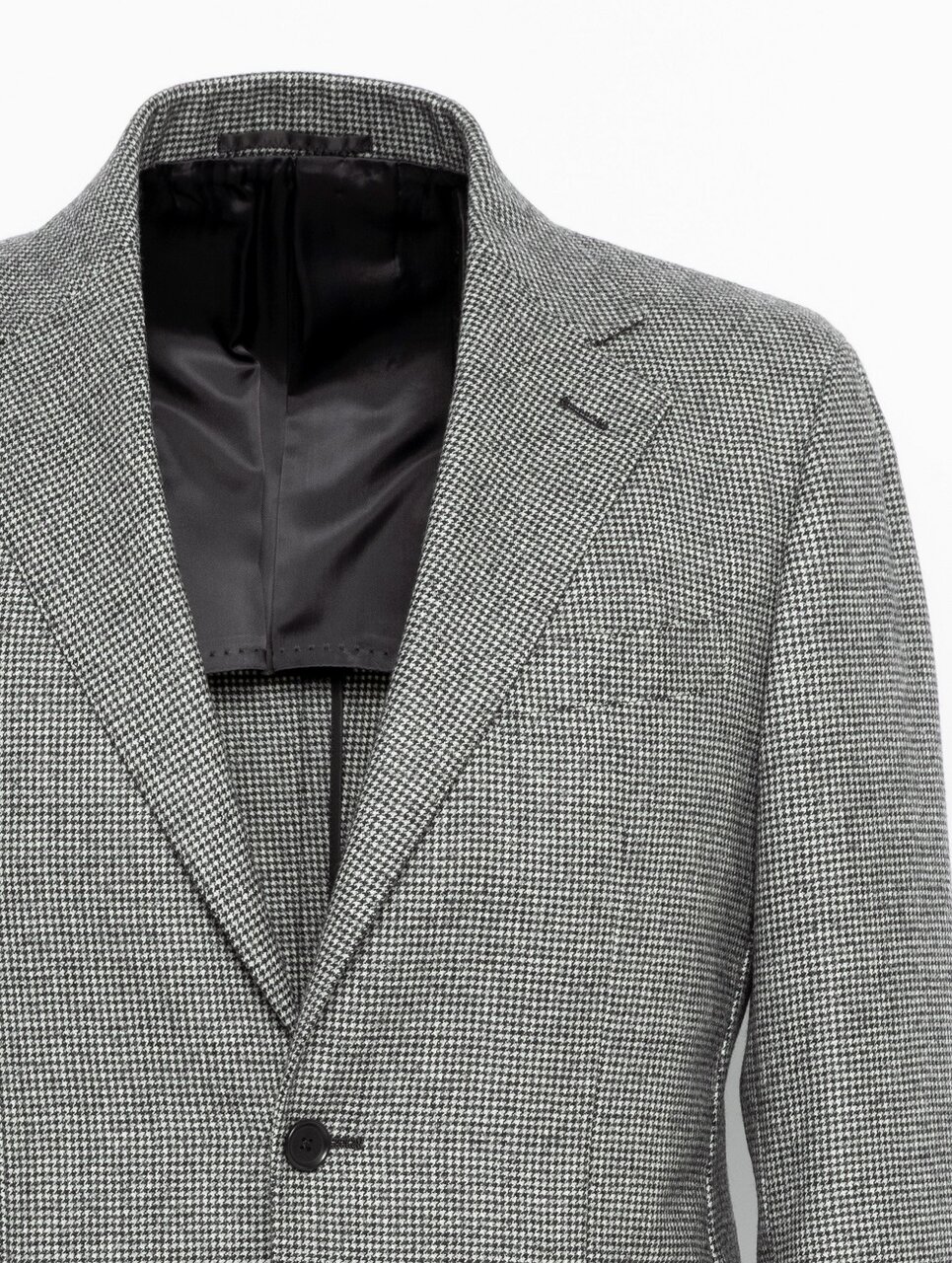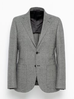 ビジネスシーンに相応しい端正な見た目と快適な着心地を追求した「コンフォート イージーモデル」のセットアップです。生地には柔らかな質感と伸縮性のあるソフトフランネル素材を使用。フランネルならではの起毛感は保ちながらも、重すぎないウエイト感で軽やかな着心地が特徴。また、細かなハウンドトゥース柄がスタイリッシュな印象を与えてくれます。ジャケットはウエスト部分にシェイプを効かせたすっきりとしたフォルムに、深さのあるVゾーンがスタイリッシュな印象を演出します。パンツは、全体的にすっきりとしたノープリーツのテーパードシルエットを採用しています。