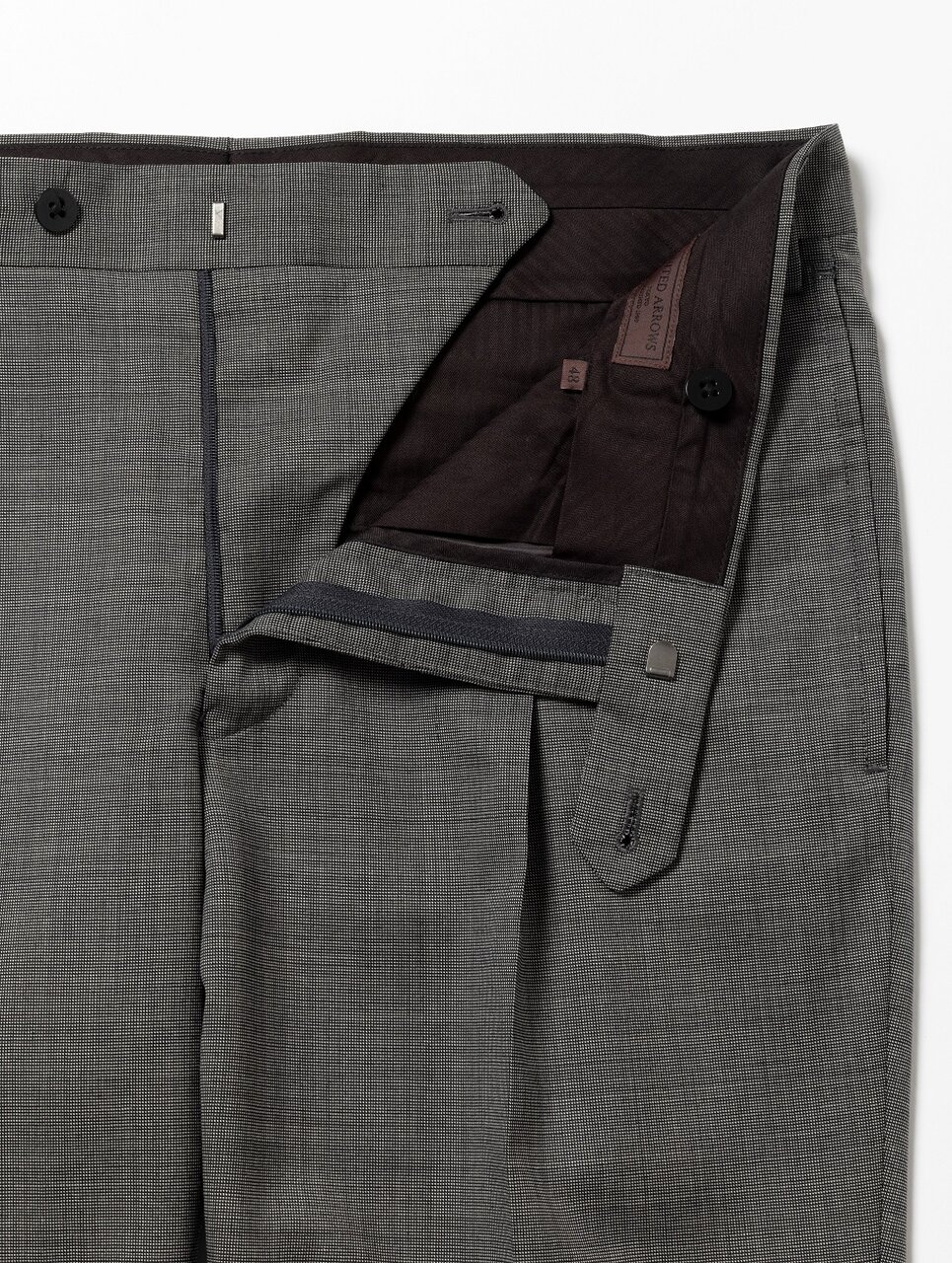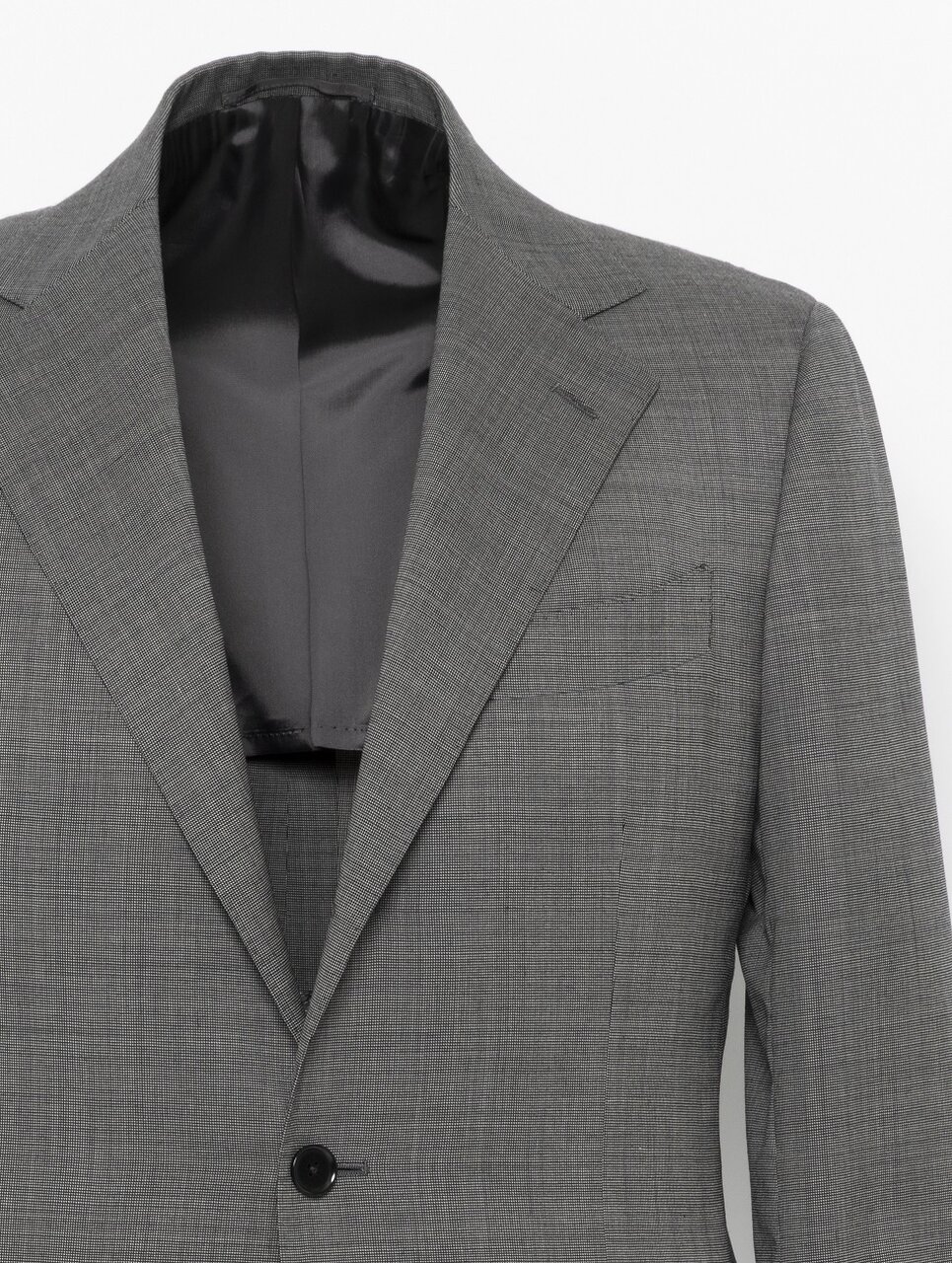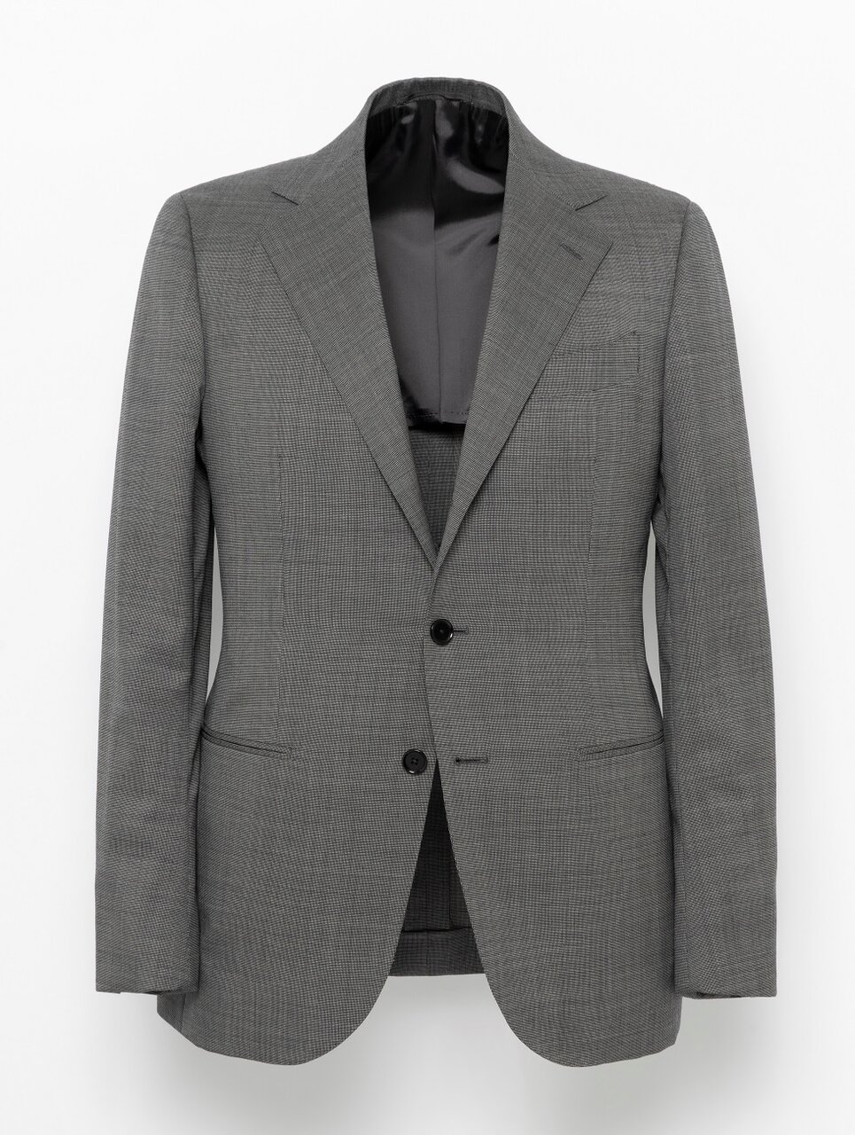 ウールを原料にした柔らかくしなやかな質感のピンチェック柄の生地を使用しています。モノトーン配色で織られたグレーカラーは都会的な雰囲気を演出します。デザインは、ほどよくゆとりを持たせた時代感のあるシルエットの「スマート」モデルを採用。軽量な芯材を使用し、ソフトで軽快な着用感と、肩パットを入れないナチュラルな印象の肩回りが特徴。ビジネスから式典まで幅広いシーンで活躍するスーツです。共生地を使用したベスト(対象品番#11252590003)と3ピースとしてもご着用いただけます。