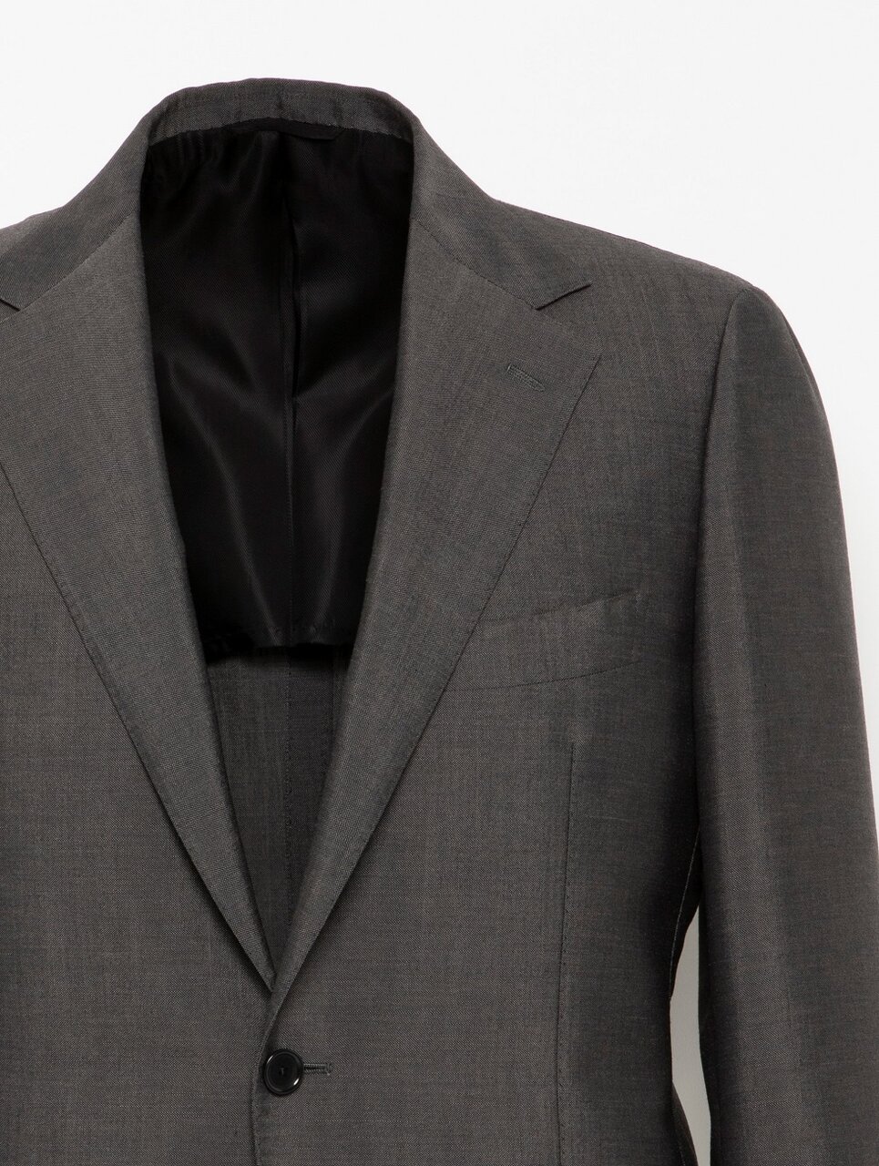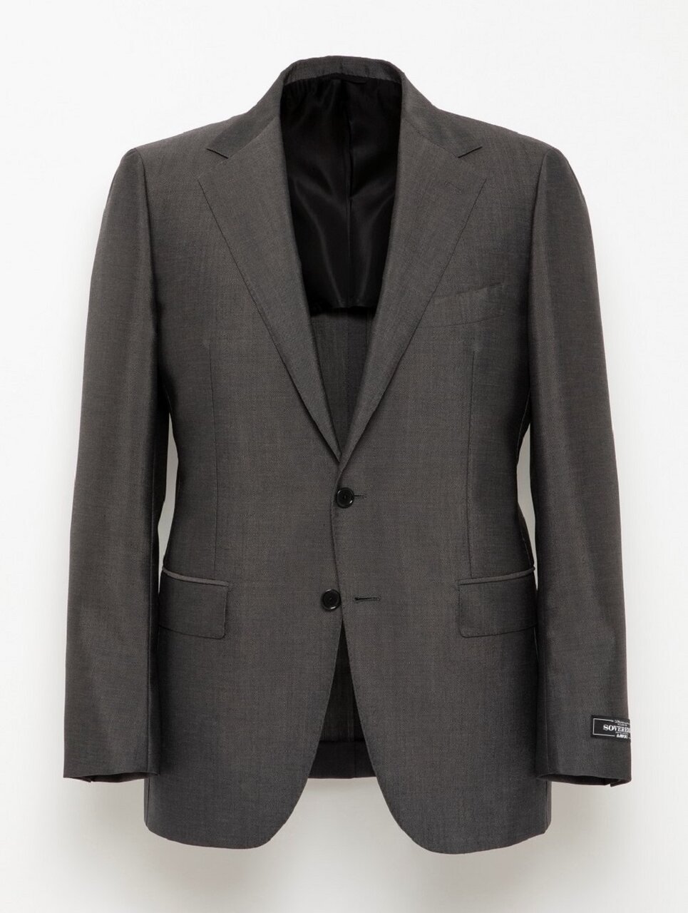国内の服地メーカー〈御幸毛織〉にて作製したウールとモヘヤ混紡トロピカル素材を使用しています。モヘヤ特有の適度なハリと、艶やかで上品な光沢が特徴です。保形性にも優れており、扱いがしやすいのも魅力です。モデルは、立体的な美しいフォルムと、直線的なショルダーラインが際立つ端正なレギュラーモデルを採用。シングル2ボタンのデザインにより深さのあるVゾーンを形成し、シャープでスタイリッシュな印象を与えます。<SOVEREIGN>の定番として長年ラインナップしている一着で、ビジネスから式典まで幅広いシーンで活躍します。