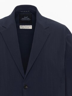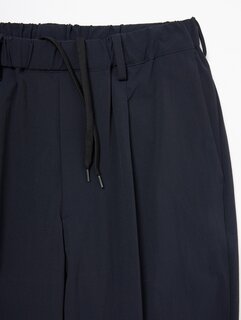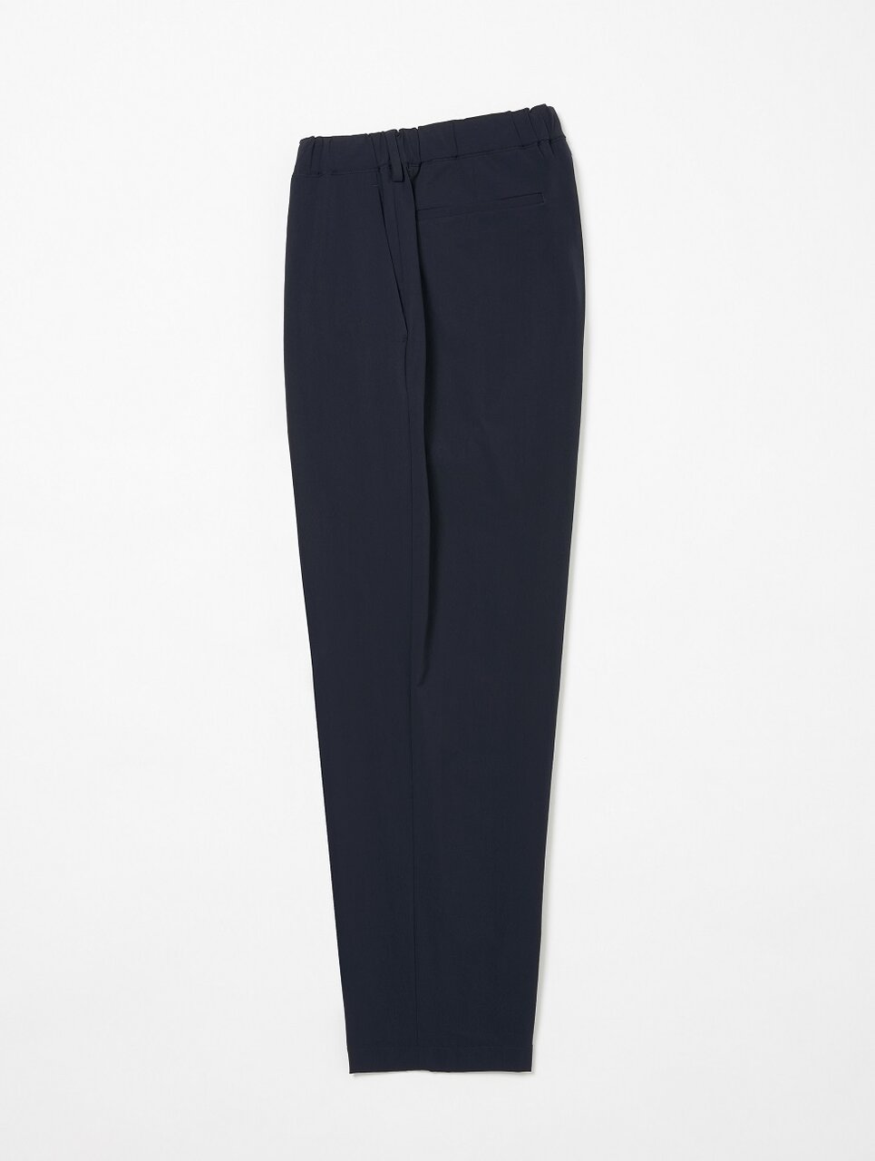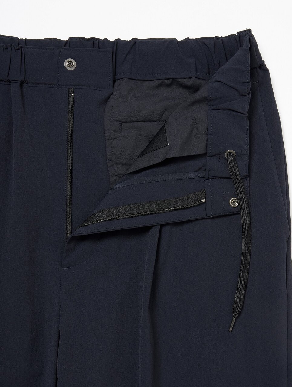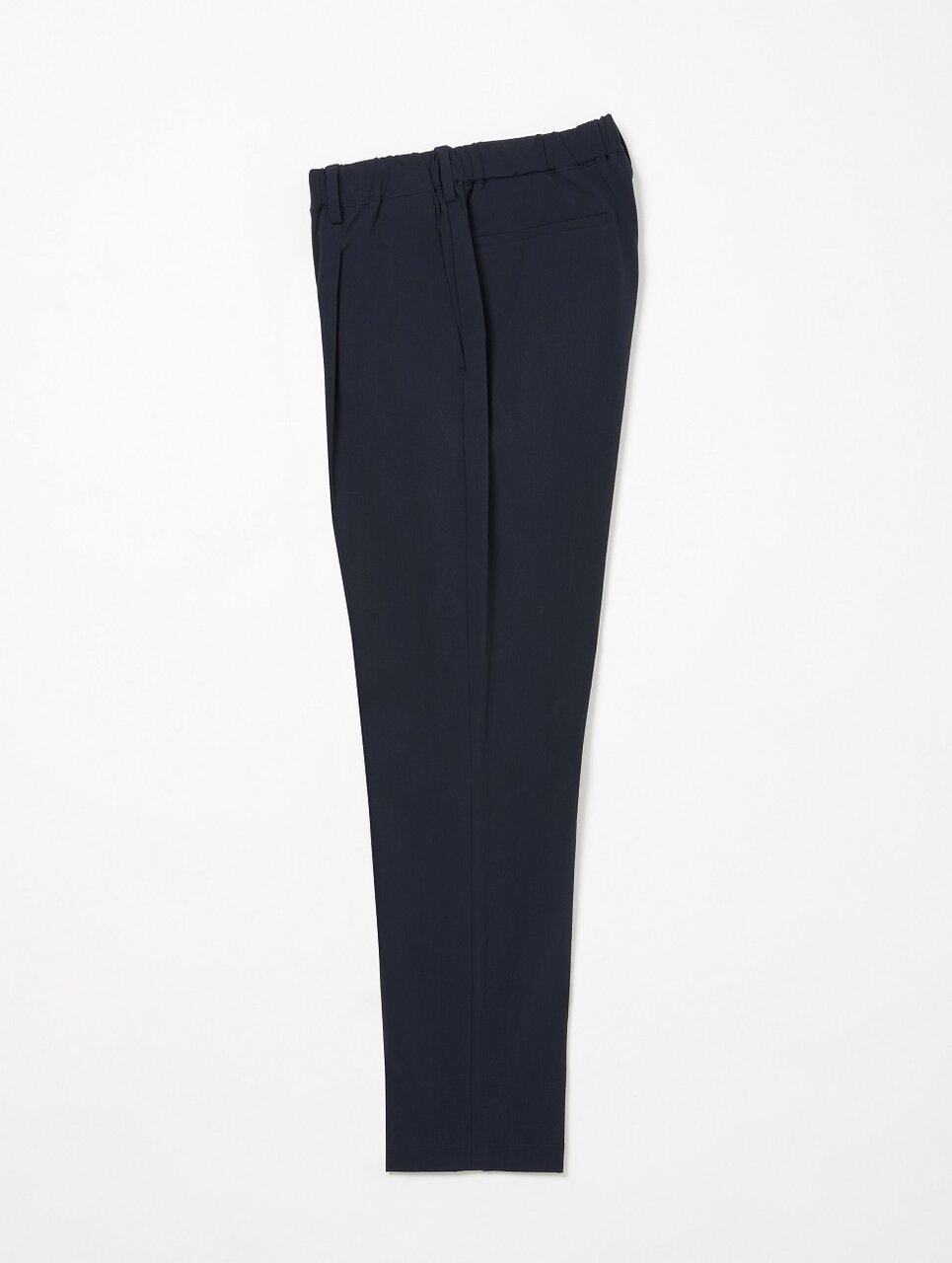 360°方向の伸縮性を確保し、様々な動きに対応するハイパフォーマンスファブリック。撥水性もあるので雨の日にもおすすめです。ジャケットはゆとりある、ウエストをほぼ絞らないボクシーなシルエットで、まるでブルゾンのような快適な着心地。パンツはウエスト回りにゆとりをもたせたテーパードシルエットと、全体的にワイドで、裾に向かって緩やかにテーパードさせたバルーンシルエットの2種類をご用意しました。ご自宅での洗濯機洗いが可能なのも嬉しいポイント。オンライン限定で、スマートシルエットのセットアップに加えてネイビーカラーも展開しています。