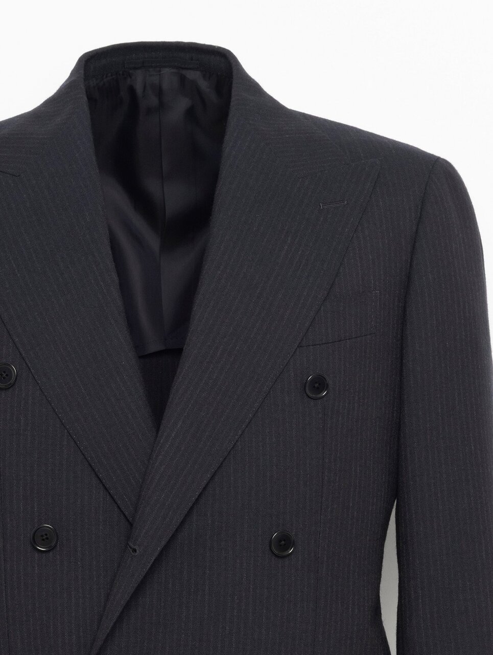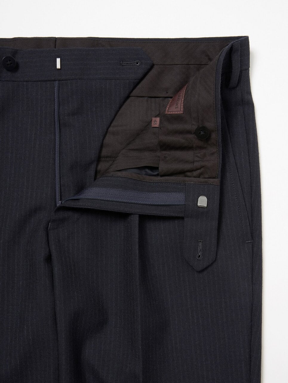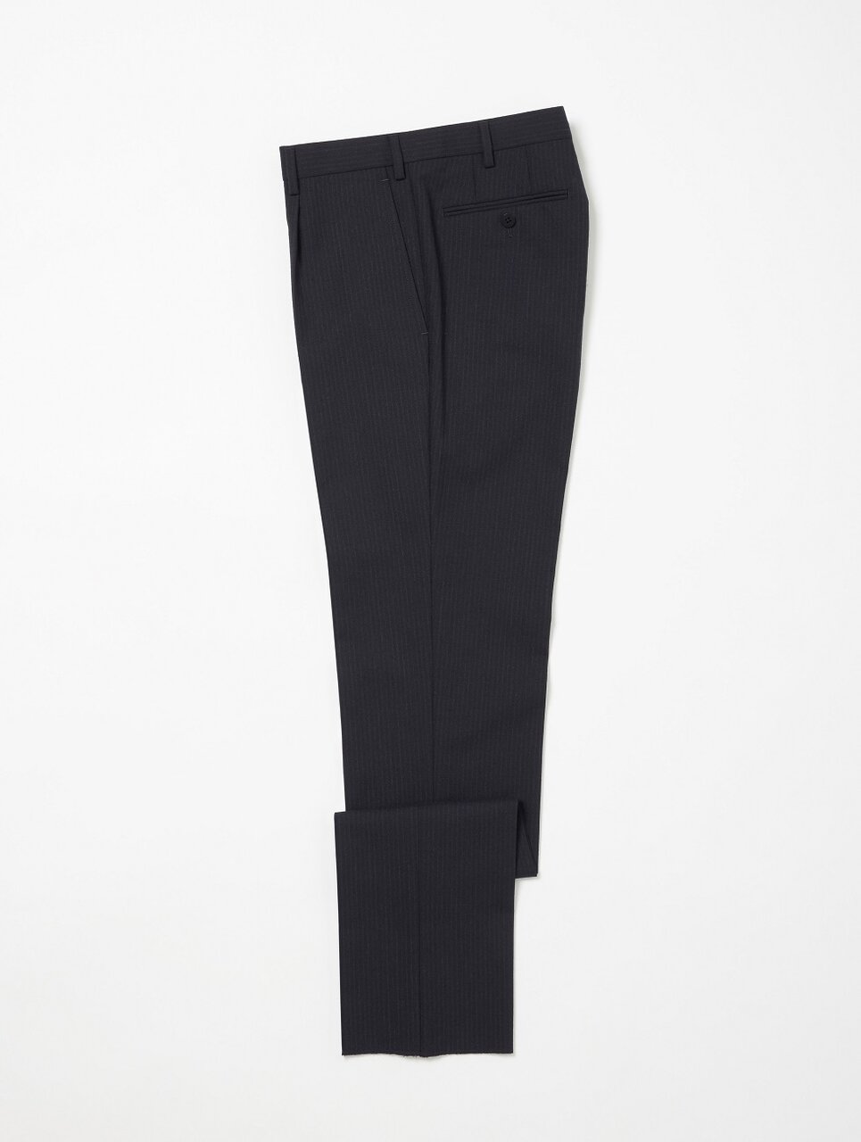 イギリスの老舗テキスタイルメーカー〈FOX BROTHERS〉の強撚糸で織り上げられたトロピカル素材を使用しています。英国らしいしっかりとした生地の質感と、細いピッチの杢ストライプ柄が特徴です。デザインは「モダン クラシック」モデルを採用。ジャケットは広めの肩幅とやや長めの着丈、ウエストにかけてシェイプされた美しいシルエット。ボトムスは上着に合わせ、やや深めの股上と、膝から裾にかけてややゆとりを持たせたストレートに近いシルエットに仕上げています。