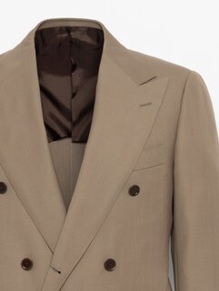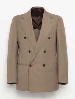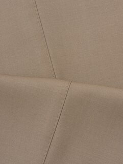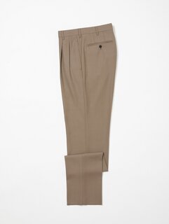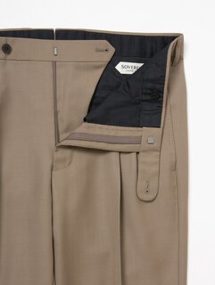 フランス創業の老舗ファブリックブランド〈DORMEUIL〉のバラシアを使用しています。艶やかでクリアな表情と、ハリのある質感が特徴です。襟付けや袖付けにハンド縫製を取り入れ、丸みのある肩回りなどソフトな印象と、仕立てのよさによる快適な着心地が魅力の一着。パンツは2プリーツを入れ、股上をやや深めに設定したデザインで、ストレート気味のシルエットに仕上げています。やわらかな雰囲気のベージュカラーが今シーズンの気分を引き立てます。