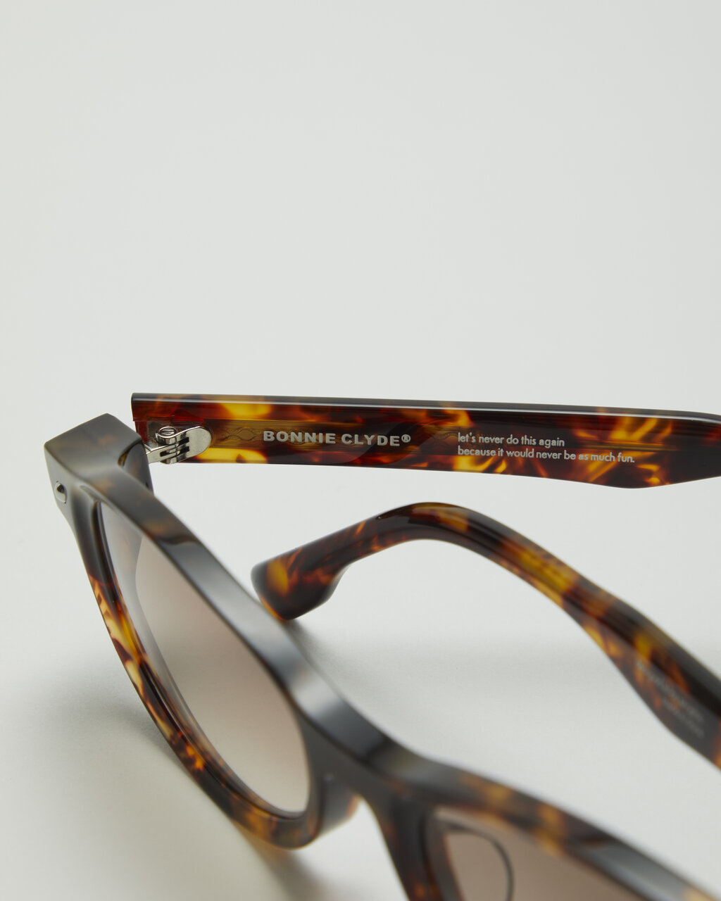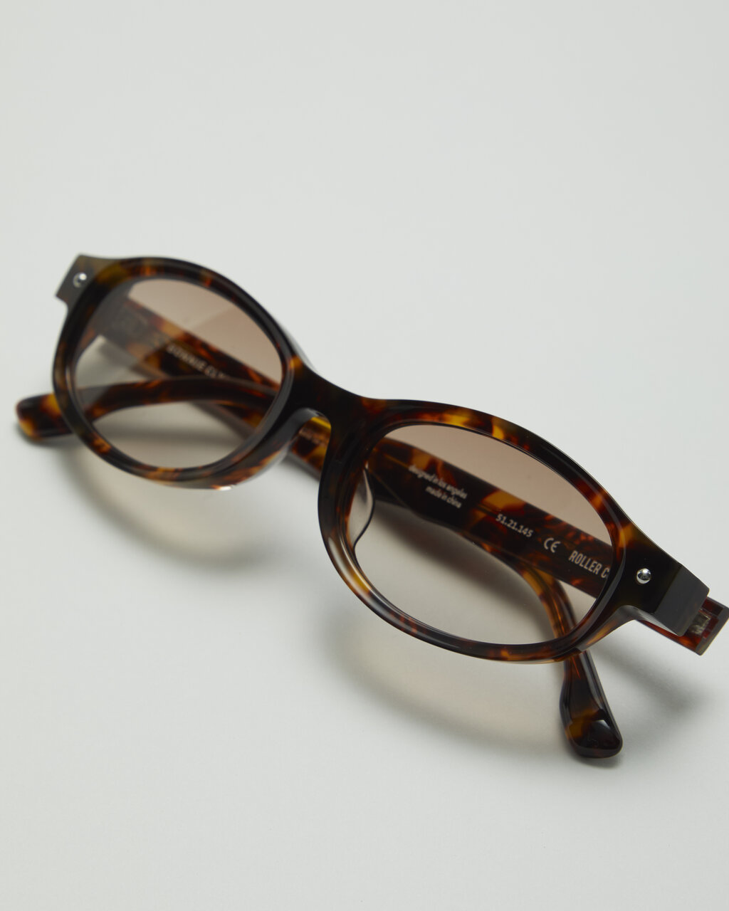 スリムなオーバルシェイプと直線的なテンプルに施されたラウンドリベットがアクセントとなった「ローラーコースター」を、〈アティセッション〉のみのターコイズフレーム×ブラウンレンズにアレンジしました。