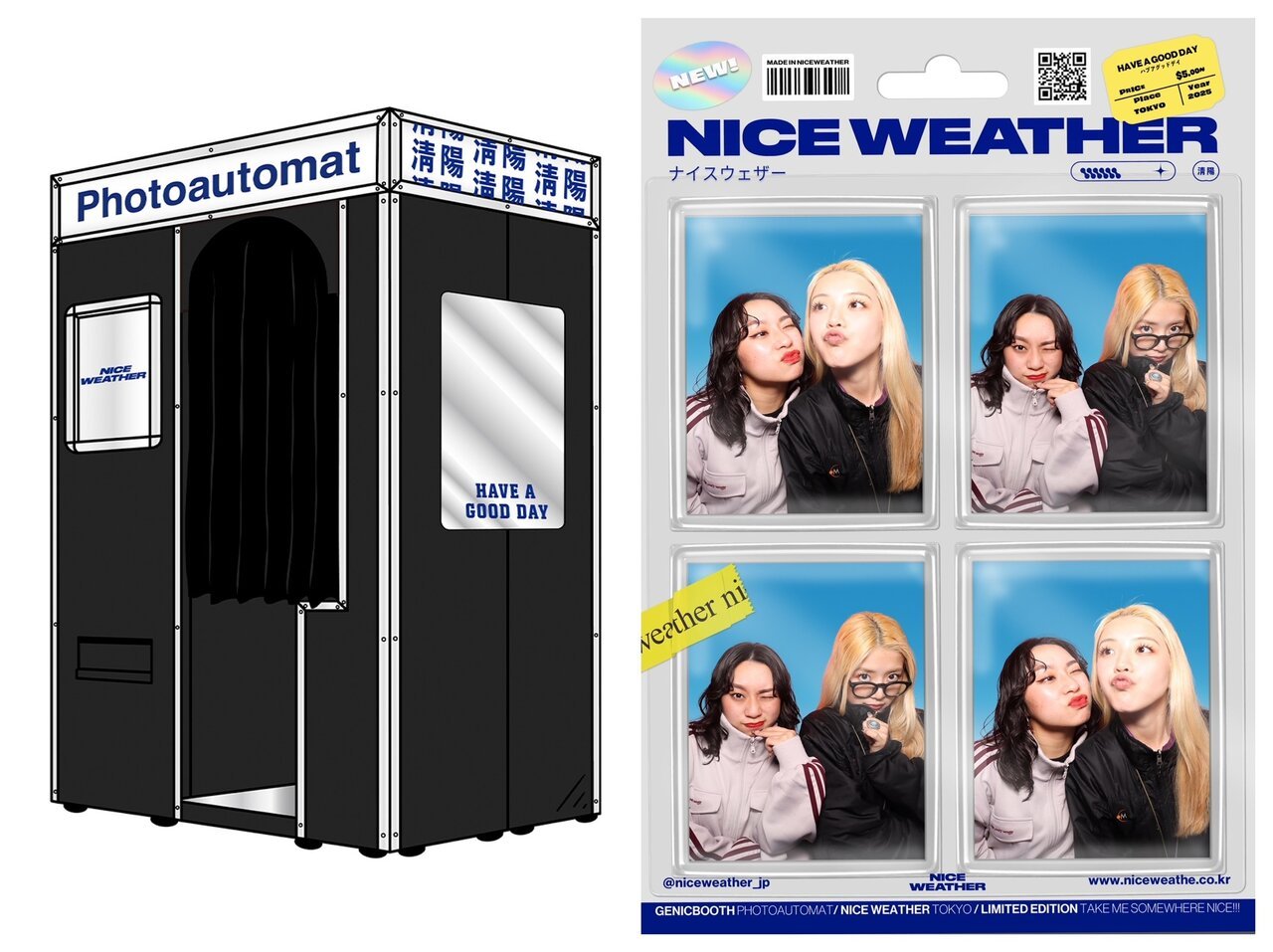 ラフォーレ原宿、渋谷スクランブルスクエ アで実施したポップアップでも好評を博した、韓国で人気の“盛らない”無加韓国セルフ写真ブース「GENICBOOTH Photoautomat(ジェニックブース・フォトオートマット)」が「Echika 表参道店」にも登場。「NICE WEATHER」仕様に変更した特別な台紙フレームで素敵な思い出に仕上げます。