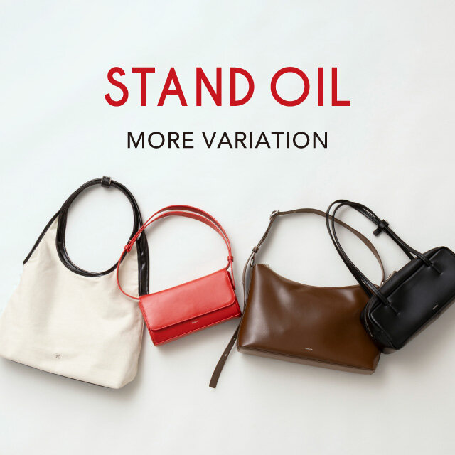 スタンドオイルは日常でいつも一緒にできるデイリーバッグをキーワードにライフスタイルに楽しさとインスピレーションを与える商品を披露します。クラシックな形に ベースのタイムレス、ミニマルデザインを追求し、シーズンごとにトレンドを組み合わせてスタンドオイルならではの感性で再解釈します。