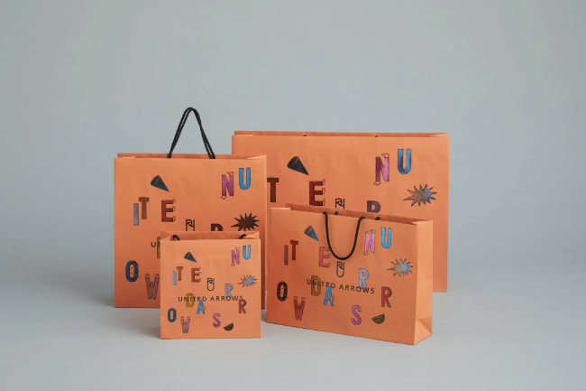 10月21日(火)よりユナイテッドアローズ各店舗にてお買い上げいただいたお客様にこちらのショッピングバッグでお包みします。全面に描かれたイラストは間弓 浩司氏が手掛けました。