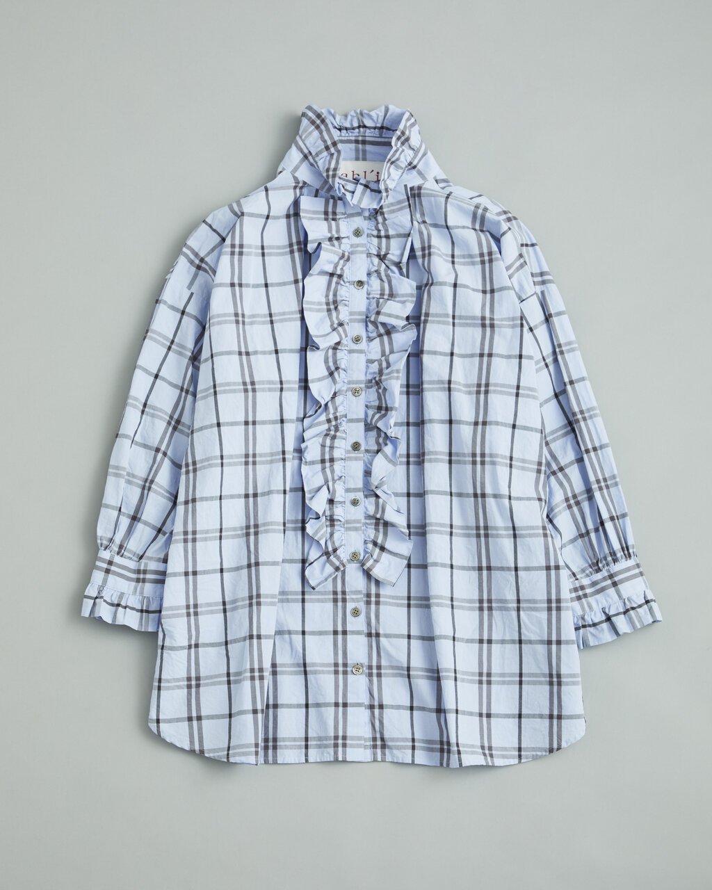 定番のフリルブラウスをチェック柄に別注。