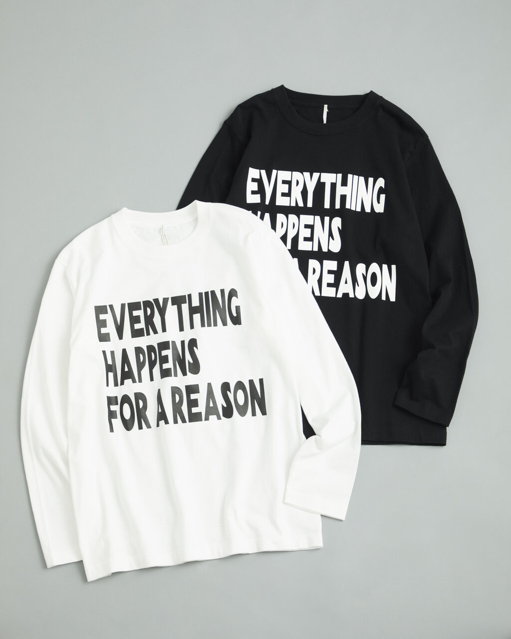 「全ての出来事には意味がある」という意味を込めています。ボディは一枚着としても様になるややゆったりとしたサイズ感で、大胆なフロントロゴがインパクトのある一着です。