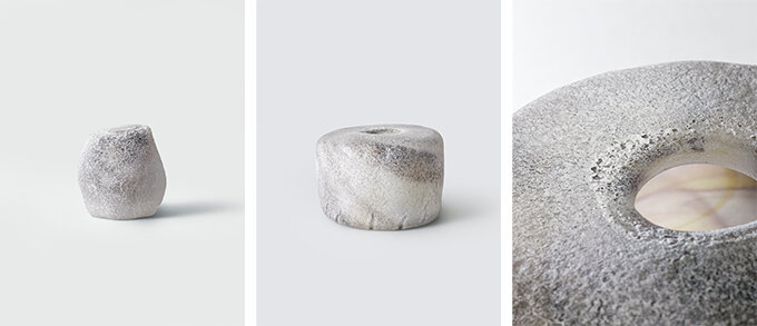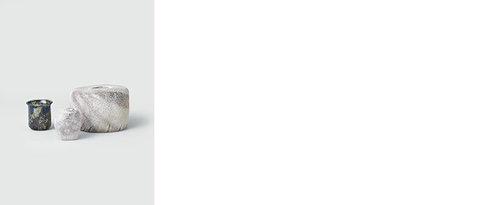 ガラスの可能性を追求し続け、圧倒的な世界観を持つガラス作品を手がける辻野さん。人工的に精製された工程を経て生まれるガラス物質の作為を否定し、天然素材としてのあり方に回帰させることで、作品を通して自然や時の経過を感じ取ることができる表現をされています。本展では、海中から息を吹き返した器をイメージした「abyss(アビス)」シリーズと、霜という意味をもつ「rime(ライム)」シリーズをご紹介いたします。