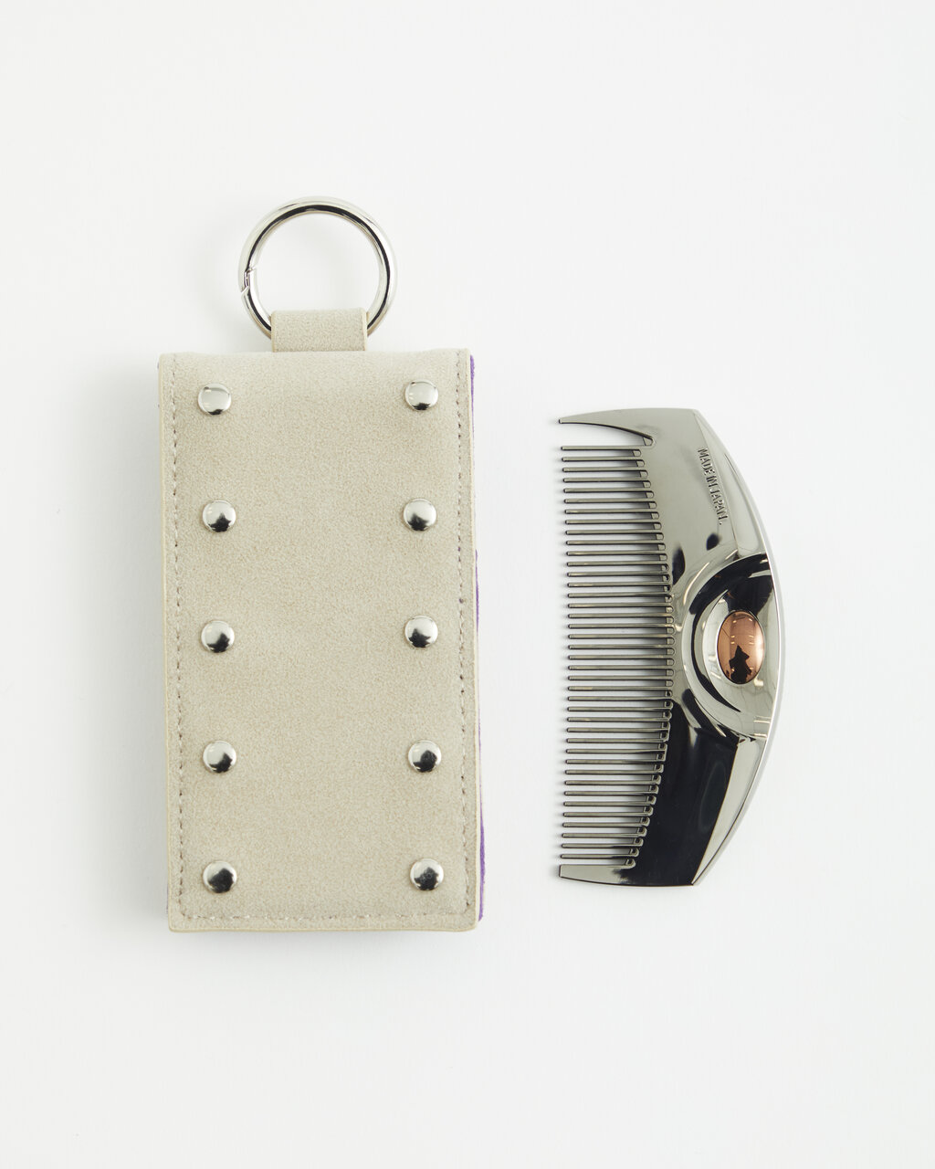 ビューティーとファッションの境界線を繋ぐアイテムを作りたいという想いから本コラボが実現。“ファッションとして成立するコーム”をテーマに<UNITED ARROWS BEAUTY>がコラボケースを監修しました。ボトムスのベルトループやバッグ、キーホルダー等に付けられるチャームのようなデザインで、コームをより身近に、ファッションとして楽しめる、ミラー付きで出し入れのしやすい機能性にも優れたアイテムです。