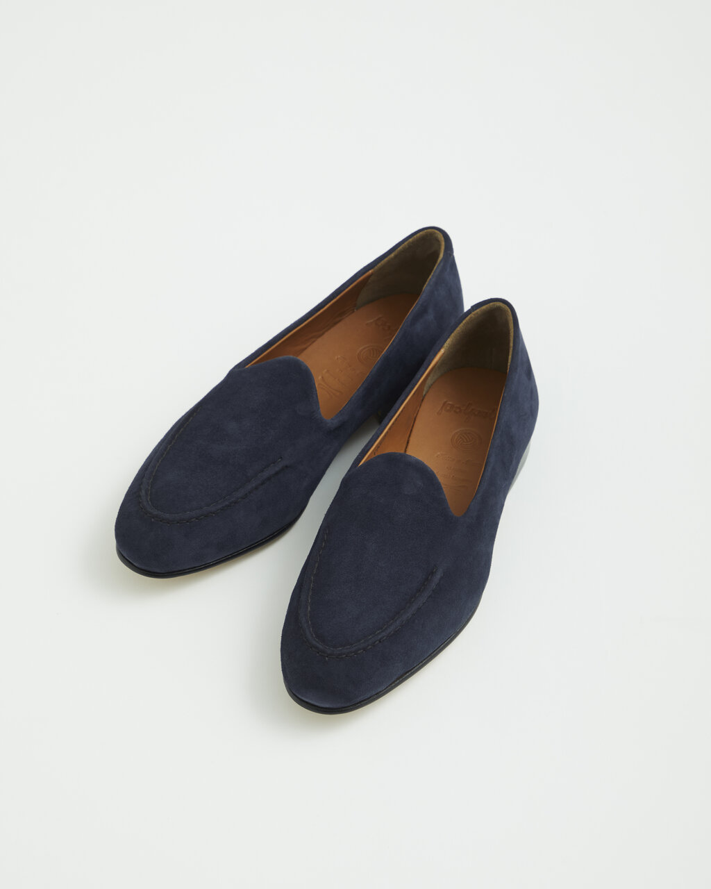 Polpettaの代表的な木型のPASSOを用いたユナイテッドアローズオリジナルデザインの別注ローファー。ゴートスウェード特有のしなやかな革を使い、手縫いのモカステッチがアクセントになりシンプルなデザインながらも雰囲気を醸し出しています。また、履き口まわりはステッチがないことによるモダンで軽快な雰囲気。今回池袋店限定の特別なアイテムとしてダークネイビーで別注。