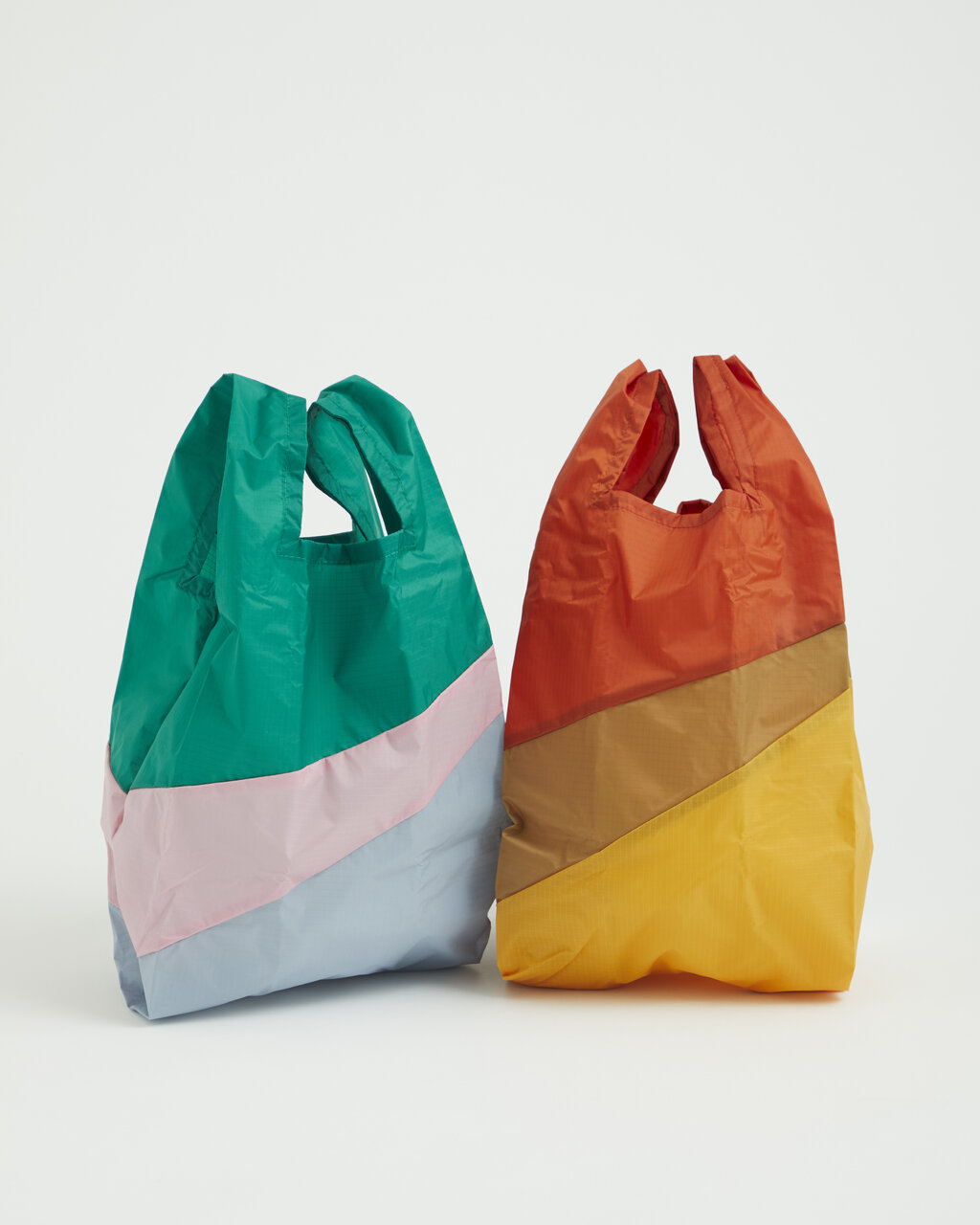 SUSAN BIJLの定番THE NEW SHOPPING BAGのMサイズ。通常2色使いの所、3色使いが別注デザインです。今回は池袋限定で限定カラーをオーダーしました。色はユナイテッドアローズをイメージしたオレンジベースと、日本の春をイメージしたグリーンベースです。