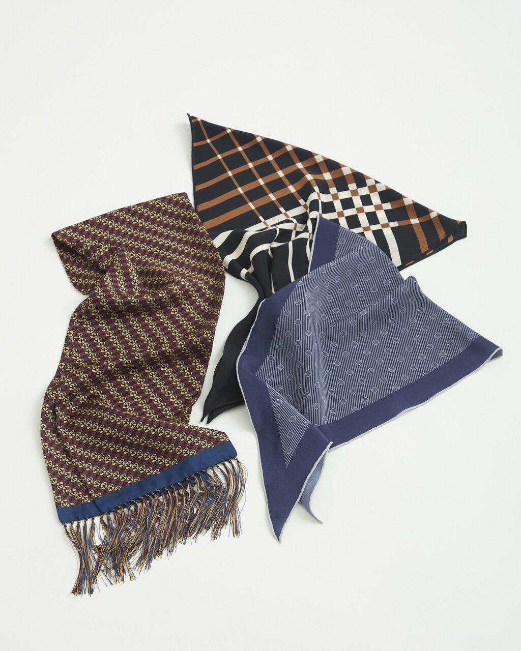 イタリア・フィレンツェのセブンフォールド社が手掛ける<Atto Vannucci>より、ブランドが保有するアーカイブのデザインをベースに10周年を記念して、特別なカラーリングで作製したダイアモンド型スカーフとフリンジ付きストールをご用意しました。軽装になるこれからの季節、コーディネートに上品なアクセントを添えてくれるアイテムです。