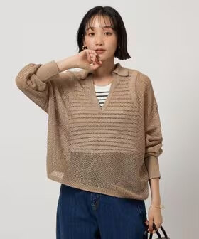 メッシュ スキッパー ニット プルオーバー ―ウォッシャブル―