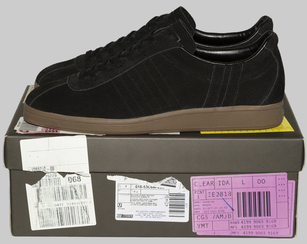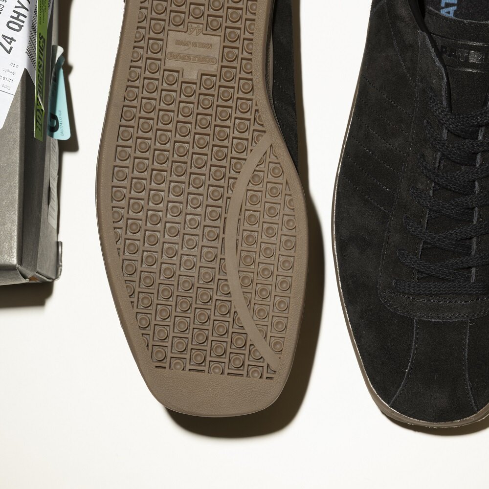 あ、いいな、と思ったのはつま先のスクエアトゥ。このフォルムと細身のシルエットが、今の空気感というか、ボトムスのトレンドにも合っている。ブランドのアイコンである2本のラインも、アッパーの素材感に馴染んでいて、主張しすぎないバランスがいい。定番として見慣れていたはずの靴が、ふと新鮮に映る瞬間がある。それがまさにスタンダードの履き時だと思っていて、この別注モデルはまさにそう感じました。