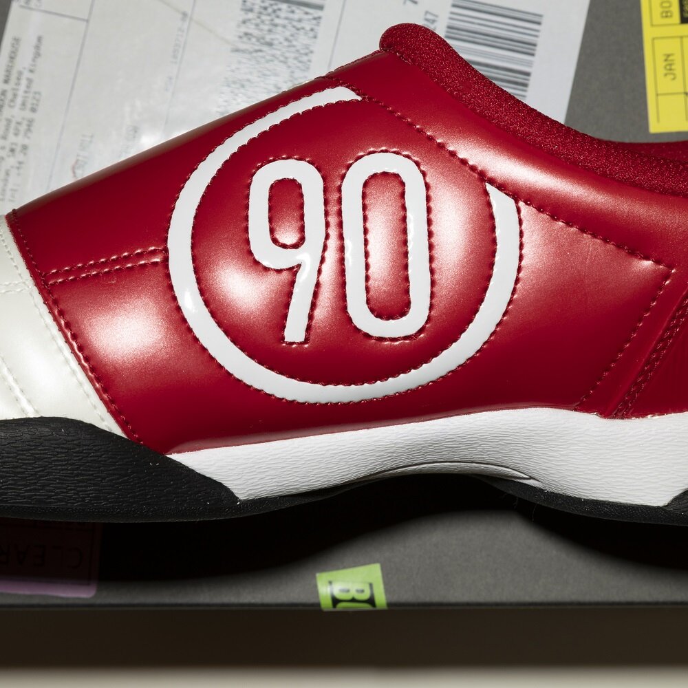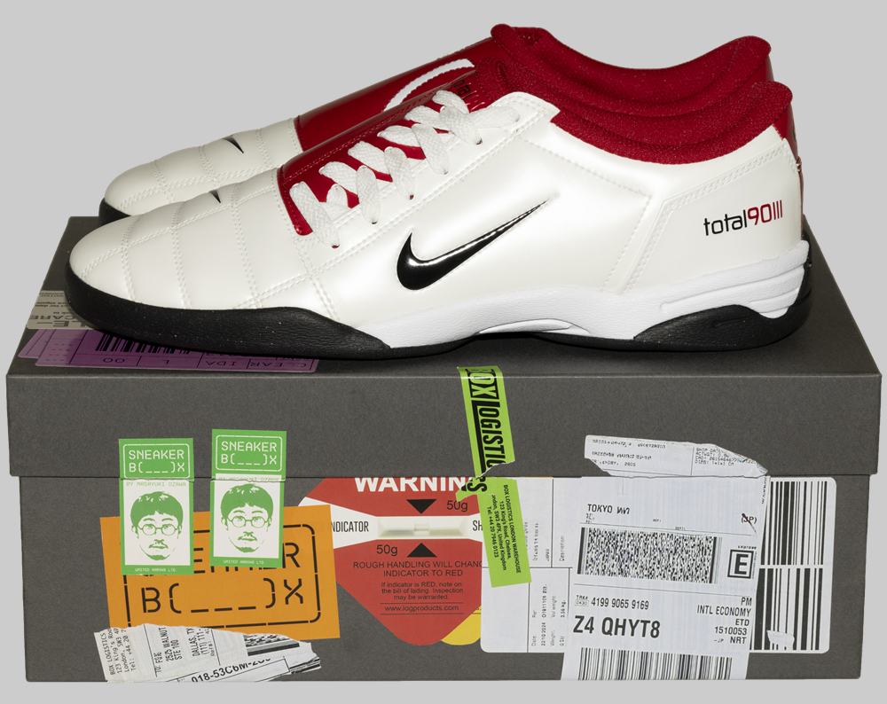 <NIKE>の「TOTAL 90」は、もともと2004年に登場したフットボールシューズ。今回ピックアップするのは、タウンユース向けにソールが更新されたモデルです。それまでフットボール用のスパイクといえば本革が当たり前でしたが、これは合皮を採用し、カラフルな色使いや軽い履き心地など、それまでの価値観を一新したシューズでした。当時のブランドでは、「FOAMPOSITE」などもリリースされていて、新しい素材というか、フォームを用いたデザインが多かった記憶があります。これはサイドに配されたシューレースが、「FOOTSCAPE」っぽい雰囲気だなと感じました。ボールに干渉しないよう考えられたディテールが、ストリートの記号と偶然重なる意外性が面白いなと。