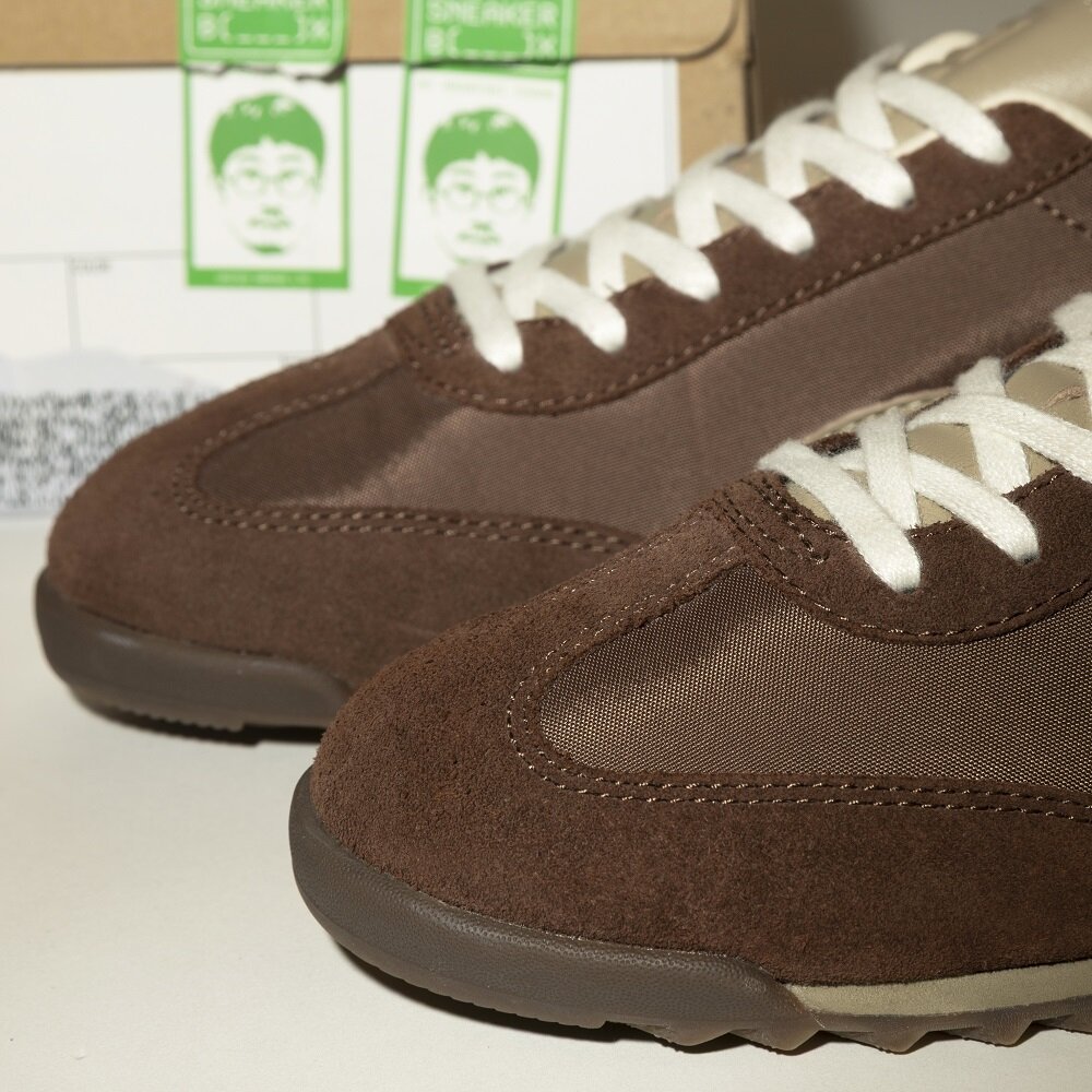 70年代のトレーニングシューズって、ここでも以前紹介した「BRAZIL」しかり、木型が細くてシャープなモデルが多い中、「ARIZONA」は丸っこいフォルムが新鮮で、柔らかいスタイルに馴染みそうだなと思いました。それは僕が好きな「KING」や「EASY RIDER」っぽいし、トレンドの「MOSTRO」や「SPEEDCAT」にも通じるところもあって、今の空気感でコーディネートしやすい。
