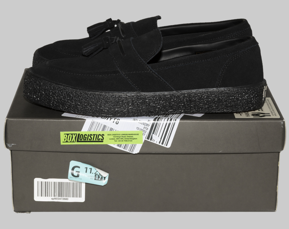 スウェーデンはストックホルム発のラストリゾートABは、ここ2年くらい僕の玄関にずっと並んでいるスケートシューズブランドです。“ワールドプレミア”とよばれるふたつの目と手のマークが目印。2020年のスタート時はいわゆるシンプルでクラシックなスニーカーが中心でしたが、ここ近年、モックやローファー型といった革靴ライクなアッパーが増えてから買い始めました。このタッセル型のスニーカーは、黒と茶色の2色を所有していて、服の雰囲気によって履き分けています。